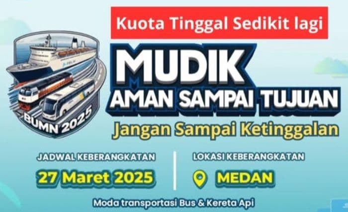 SEKILAS SUMUT– PT Perusahaan Listrik Negara (Persero) Unit Induk Distribusi (UID) Sumatera Utara (Sumut) menggelar program mudik gratis dengan menyediakan 576 tiket bagi masyarakat yang ingin pulang ke kampung halaman saat Hari Raya Idulfitri 1446 Hijriah/2025 Masehi.